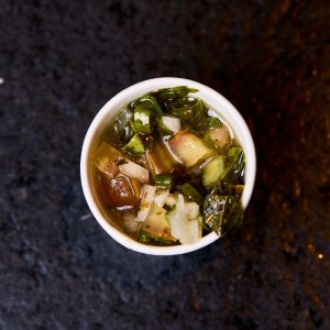 O molho tradicional dos galetos de brasília, feito diaramente com 8 ervas diferentes