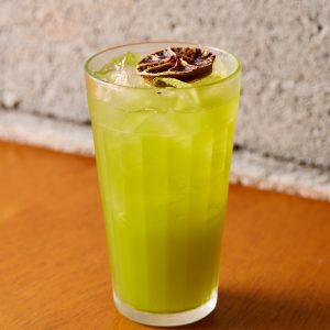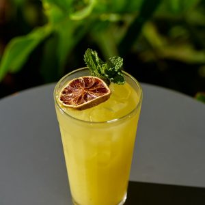 Gin Nulla Zero, Seriguela, Limão e Soda de Capim Santo.