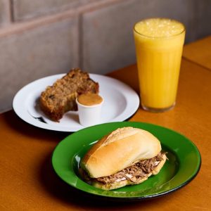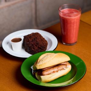 Cuscuz com Carne+Cajuína+Bolo de Chocolate.