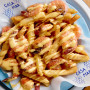 Batata frita com camarão alho e oléo regada com maionese de moqueca.
