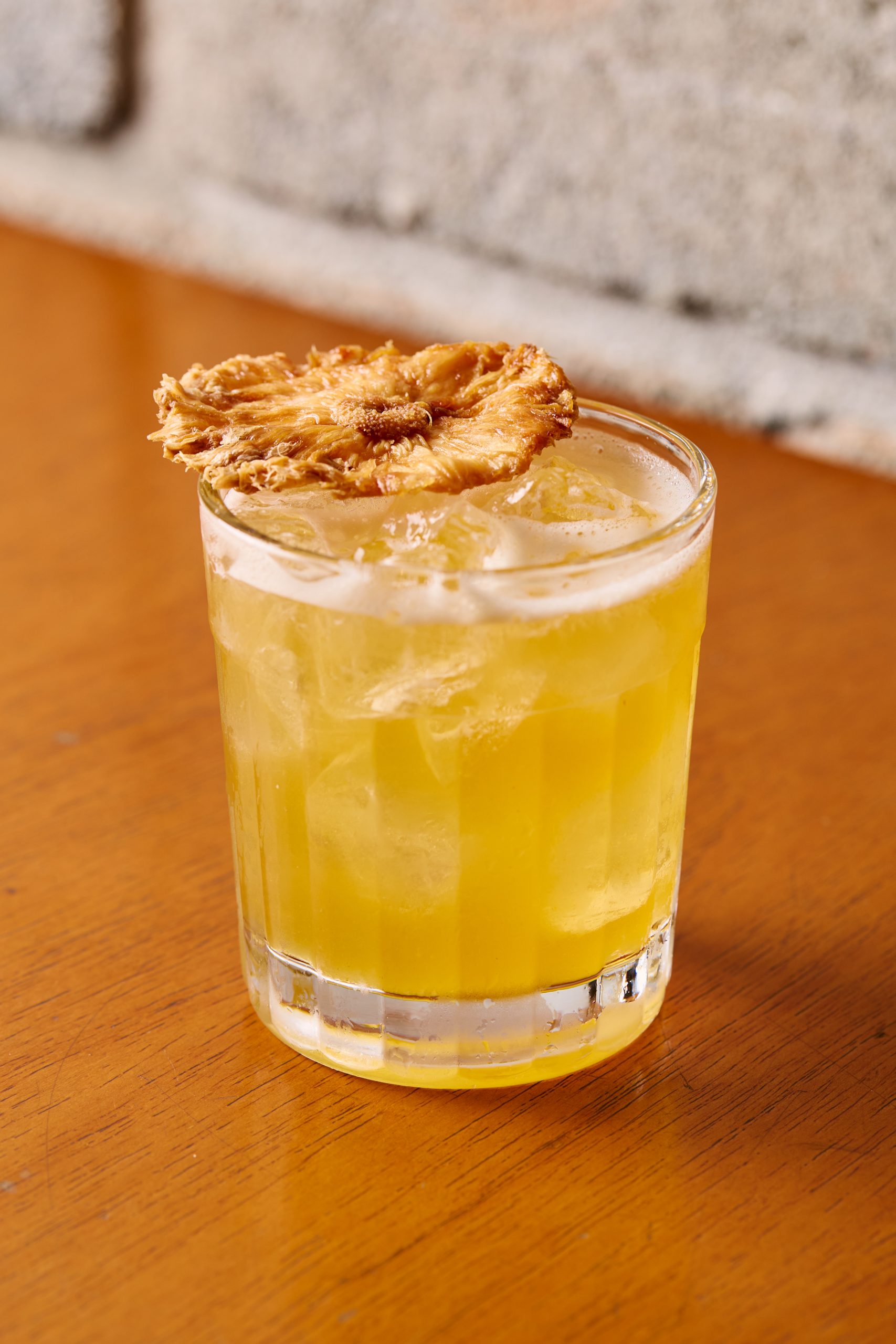 Gordon's Gin, Purê de Abacaxi com Mate, Limão, Tropical Seco e Angostura Bitter.