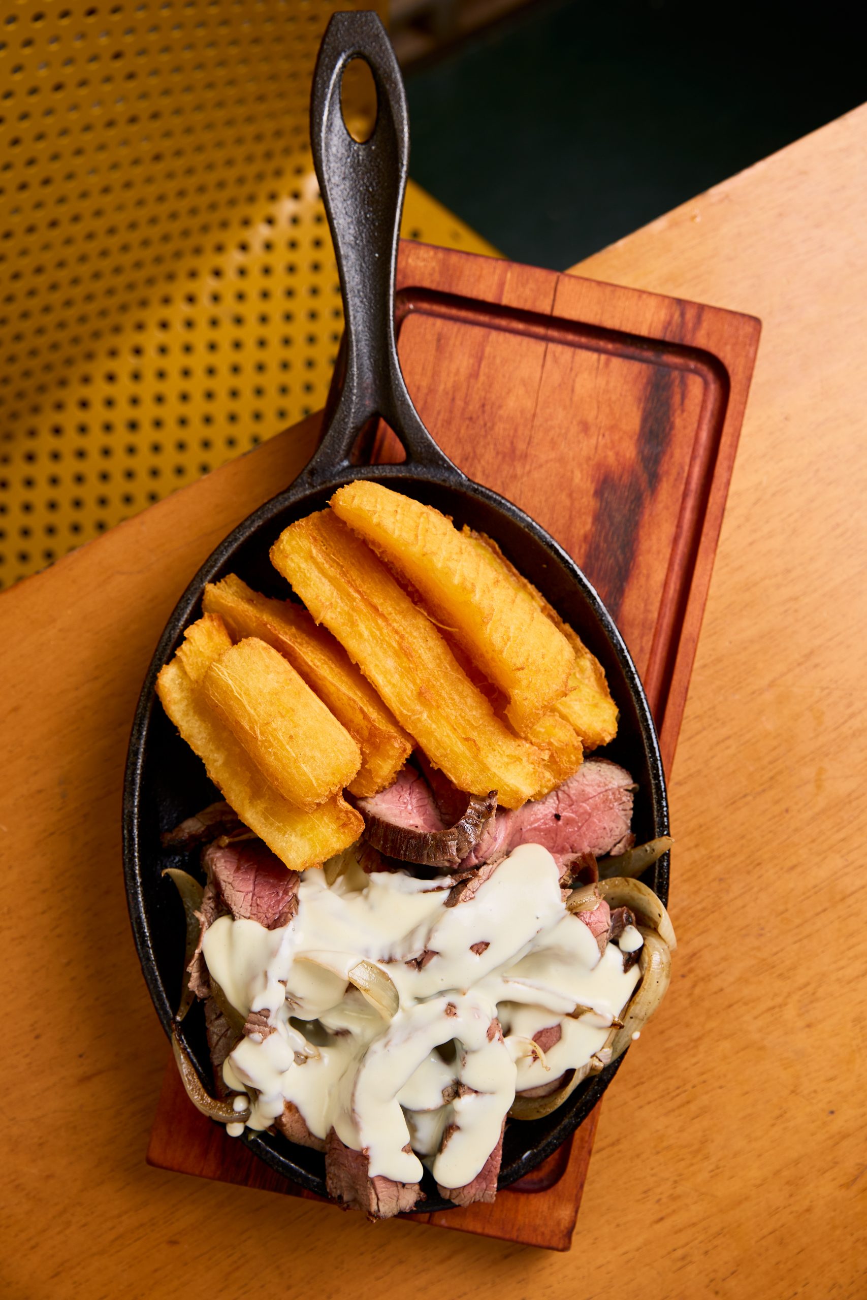 Nossa carne de sol já clássica do mané, servida em uma chapa pelando, com