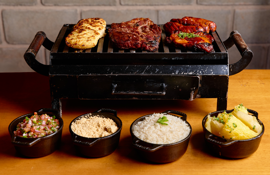 O churrasco com gosto de domingão em familia! Shortribs (600g), sobrecoxa grelhada, porção de linguiça defumada, nosso pão de alho foda, arroz, mandioca, farofa e vinagrete!