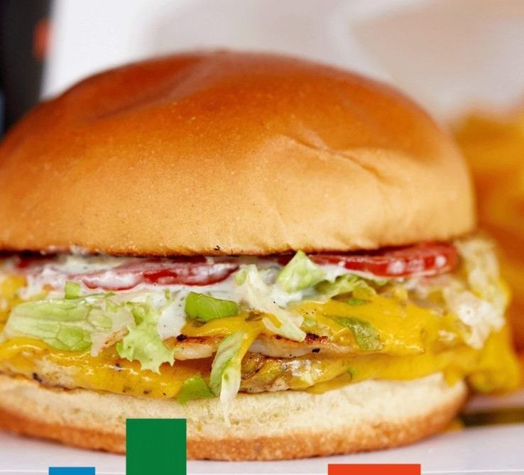Smash de frango, american cheese da casa, molho ranch, alface americana, tomate e brioche.
