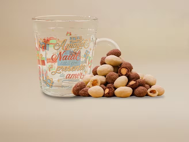 Caneca personalizada com as ilustrações do tema Natal Perdomo, uma edição limitada, acompanhada por nosso Crocante de Amor Chocolate Duo: Amêndoas tostadas banhadas no Chocolate ao Leite e Chocolate Branco, finalizadas com leite em pó. Embaladas em uma Bag personalizada para o Natal Perdomo Doces!!