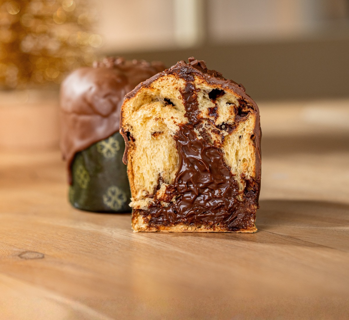 "Chocottone Petit com gotas de Chocolate, recheado com Brigadeiro de Chocolate ao Leite, finalizado com Chocolate ao Leite e granulados. Embalado em uma linda Bag personalizada com tema do Natal Perdomo!!