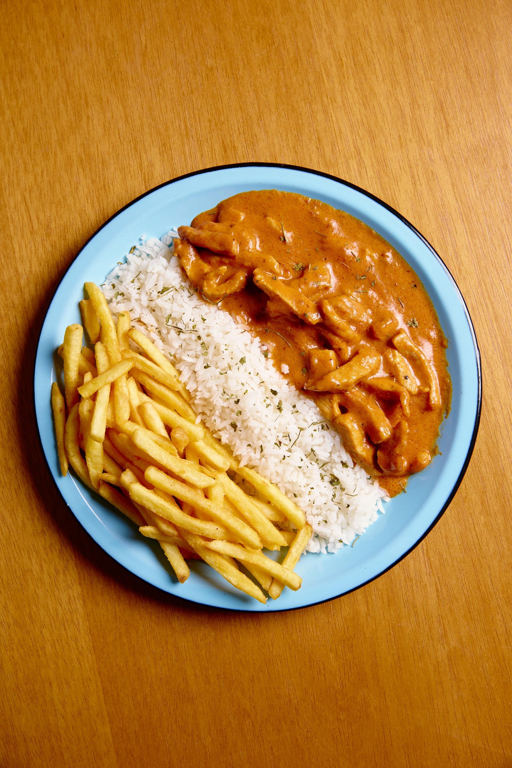 Lombo de Porco (200g) ao Estrogonofe. Cubos suculentos de lombo suíno, cozidos lentamente em um molho cremoso e encorpado de estrogonofe, com um toque de mostarda e especiarias selecionadas. Acompanha arroz branco soltinho e nossas irresistíveis batatas fritas super crocantes.
