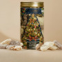 "Duo de Bolachinhas Perdomo cobertas com Chocolate ao Leite e Bolachinhas Perdomo cobertas com Chocolate Branco, finalizadas com leite em pó. Embaladas em um lindo pote natalino para presentear!! 450g