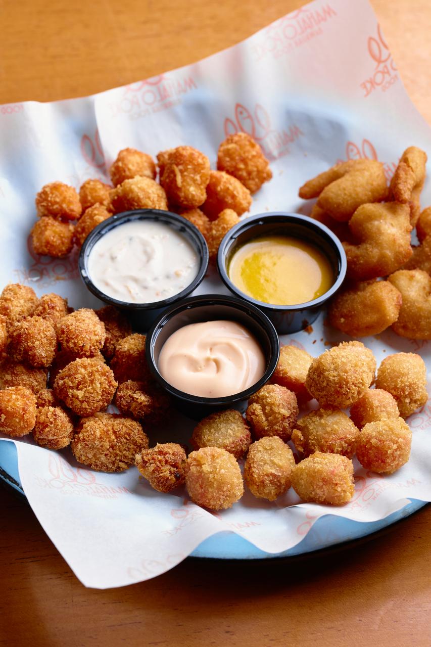 Camarão empanado, salmão empanado, salmon cream empanado, kani empanado + 3 molhos (Sour Cream, Maracujá e Siracha Hot Mayo)