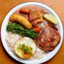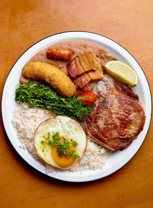 Arroz, tutu, couve, banana frita, ovo, bisteca suína , linguiça e torresmo. O Brasil inteiro num prato só, e ainda sobra vontade de cochilar.