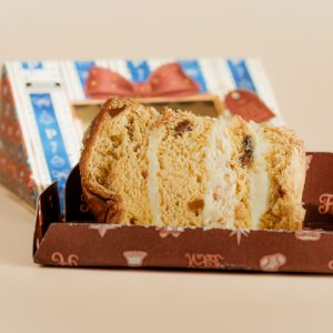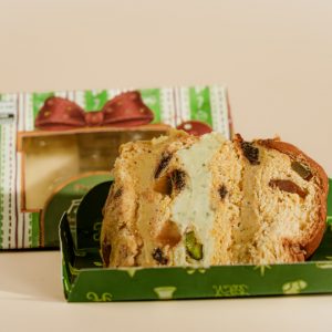 "Fatia do nosso Panettone com frutas cristalizadas, recheada com camadas de Brigadeiro de Pistache com Lascas Crocantes de Pistache e Brigadeiro de Limão. O sabor ideal para os amantes de Pistache ...