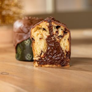 "Fatia do nosso Chocottone com gotas de chocolate ao leite, recheada com Brigadeiro de Chocolate Belga Meio Amargo, PerFella (nosso famoso creme de avelã) e Lascas Crocantes de Chocolate 70%. Perfe...