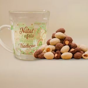 Amêndoas tostadas bem crocantes cobertas por chocolate meio amargo e finalizadas com cacau.