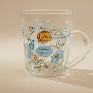 Caneca personalizada com as ilustrações do tema 10 Anos Perdomo, uma edição exclusiva e limitada para você colecionar!