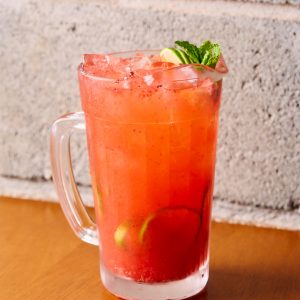 Gin, Red Bull de Melancia, Limão Desidratado e Hortelã.
