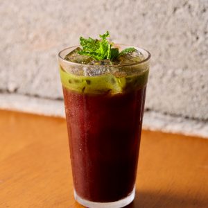 Gordon’s Gin, Calda de Açaí com Camomila, Limão e Angostura Bitter.