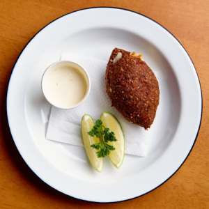 Croquetes de carne de panela com nossa maionese de mostarda e mel. 6 unidades.