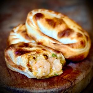 Camarões salteados, catupiry original, cebolinha fresca e um toque de paprica doce.